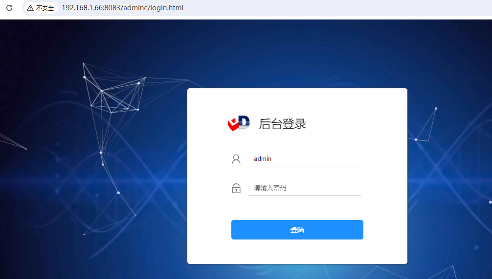 5.在浏览器输入管理地址,默认是:http://192.168.1.66:8083/adminc/login.html