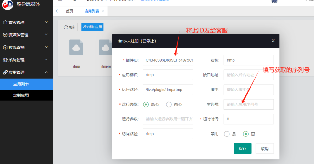 6.如果进入后台,请到应用管理,单击图标->设置,会弹出窗口