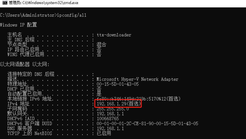 输入cmd,再输入ipconfig/all运行,查看本机IP